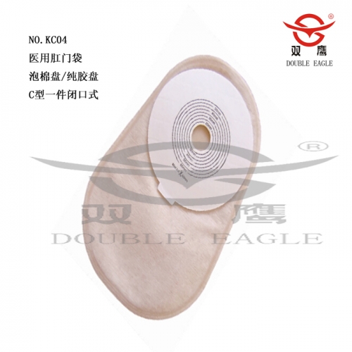 一件式造口袋. 兩件式在口袋'清潔造口及其周圍皮膚并待其干燥后,除去肛門袋底盤外的粘紙,對準造口貼緊周圍皮膚,袋口的凹槽與底盤扣牢,袋囊朝下尾端反折,并用外夾關閉.必要時應有彈性的腰帶固定人工肛門袋。